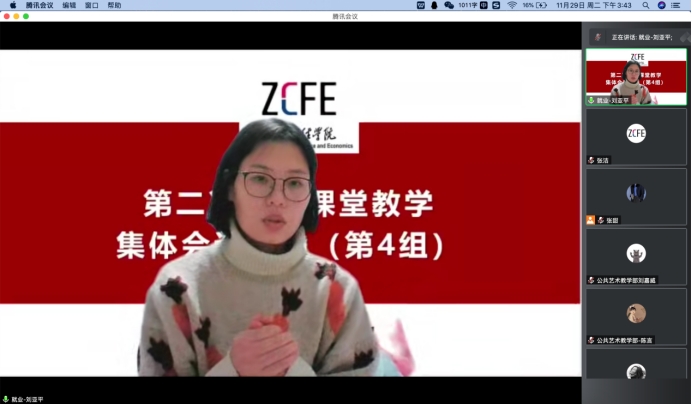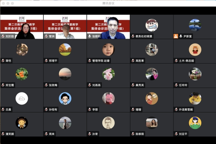 教师课堂教学集体会诊活动旨在回顾前一阶段教学情况的基础上,总结经验,集思广益、共同研磨,力求用集体的智慧帮助青年教师推出高质量课程。本次评议的对象为11月25日、11月26日随机抽取、集中听课的16门线上授课的教师。活动根据学科类别等差异分别分为经管、文、工和公共课四个组采取线上方式同时进行。